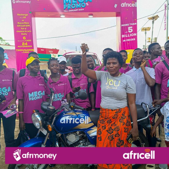 As they continue to give back to their subscribers in various communities across the country through the Africell Mega Promo, the leading mobile company in Sierra Leone, Africell, has presented a brand new motor bike to the sixth lucky winner of Africell Mega Promo for this week.