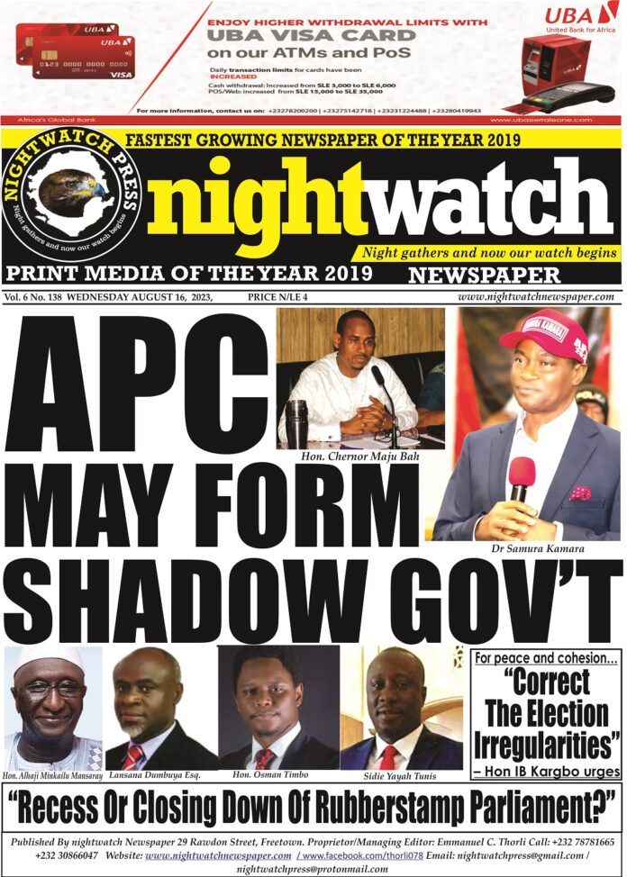 As strong suspicion of rigging takes root, All People’s Congress (APC)’s parliamentarians, mayors, chairmen and councillors have made up their minds not to participate in all levels of governance until credible results are published. APC remains highly critical of the election results announced by the Chief Electoral Commissioner, Mohamed Kenewui last June.
