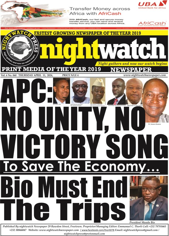 The end result of this short sighted return to take part in the running of the government of Sierra Leone is that the main opposition is not working as an opposition in the interest of the party and nation. The ruling party government is busy making inroads into the APC because there is no unity in the ranks. The ruling party government is exploiting this kink in the APC’s design to their advantage.