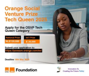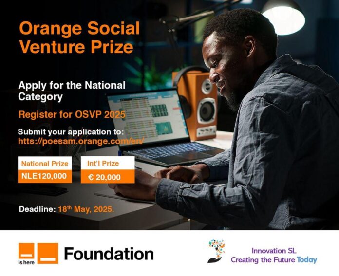 The 18th May 2025 marks the end of the application process for the 7th edition of the Orange Social Venture Prize (OSVP) in Sierra Leone, marking its 15th edition across Africa and the Middle East. The competition has gathered momentum as applications are coming in droves. Those that are yet to send in their application are encouraged to apply on or before the 18th May 2025.
