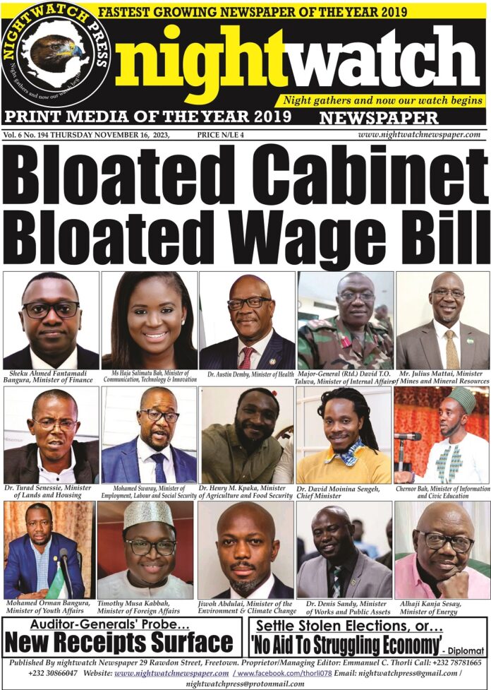A government with a huge number of personnel spends huge amount of money on its officers at the expense of the state. So be it for the Sierra Leone Government which appears to be biting more than it can chew.