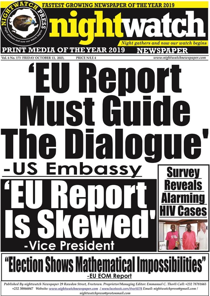 Sierra Leone’s election, according to the EU report, means no election has been conducted in Sierra Leone since it riddled with clear rigging and an unparalleled thuggery. The report pointed out several instances of naked rigging and unprecedented scale of political thuggery that rendered the election a mere sham.