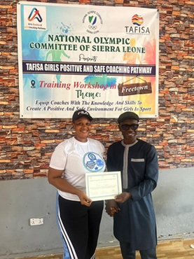 The National Olympic Committee of Sierra Leone (NOC-SLE), in collaboration with TAFISA and Nike, wrapped up the first phase of the Girls Positive and Safe Coaching Pathway, last week at the OlympAfrica Center, Goderich in Freetown.