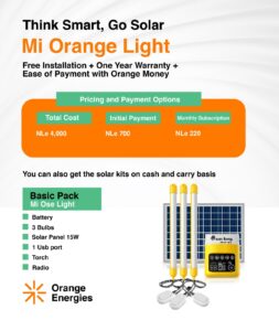 Orange energy carters for the needs of both urban and rural families that are not connected to the national grid and provide a solution in the event of load shedding.