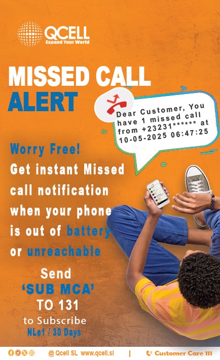 With QCell’s Missed Call Alert, you get notified instantly via SMS.