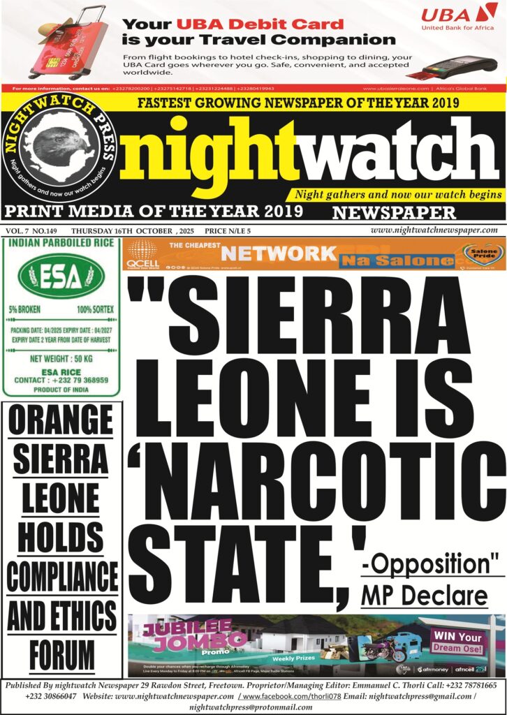 “If the situation continues unchecked, Sierra Leone risks sliding into what I call a narcotic state a condition where drug money and criminal networks could influence politics, weaken institutions, and corrode the moral fabric of society,” Mansaray said.