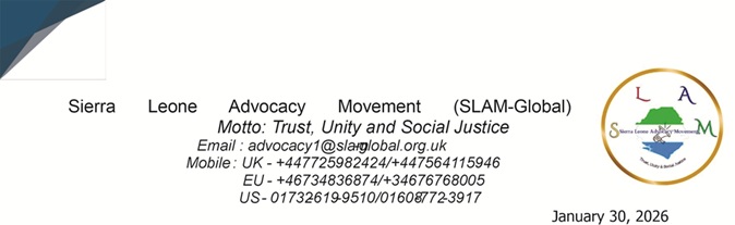 The Sierra Leone Advocacy Movement – Global (SLAM-GLOBAL), speaking on behalf of the long-suffering yet resilient people of Sierra Leone at home and across the diaspora, issues this statement as a continuation and expansion of our earlier press release addressing the proposed “20% in two-thirds of districts” presidential threshold.