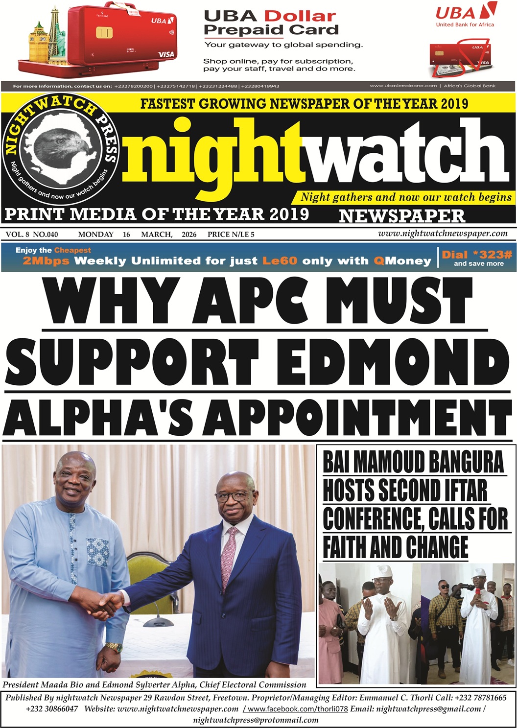 Therefore, a popular argument holds that if APC support President Bio in the appointment of Mohamed Konneh, they must also prepare to accept the new election boss, Edmond Alpha.