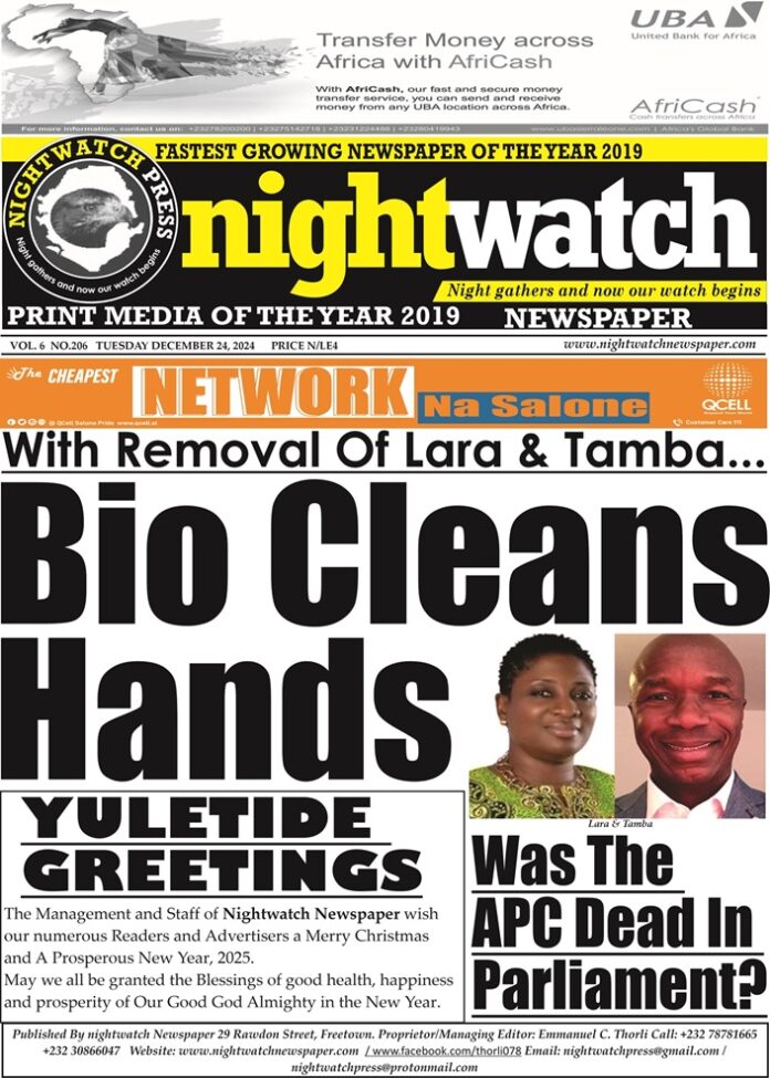 However, on Friday, 20th December 20204 before the MPs voted for the removal of the auditors, President Bio was reported to have sent a letter to Parliament which was read out by the Clerk of Parliament Hon. Umar Paran Tarawally.