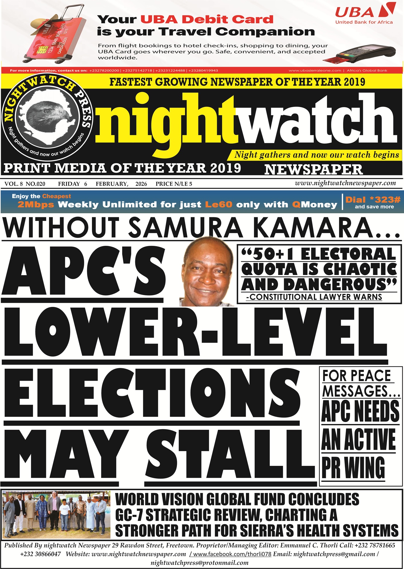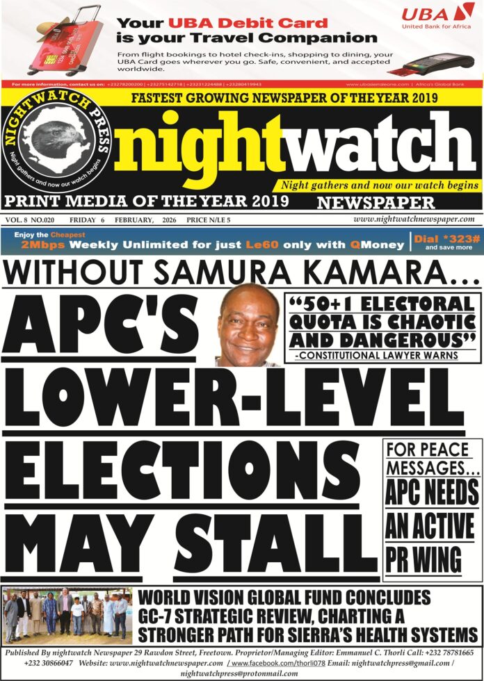 As he spoke to Nightwatch press, he was blunt to say that, “it will be quite difficult for the Executive to hold lower-level elections for now until the political stalemate between APC and the ruling Sierra Leone People’s Party (SLPP) is amicably resolved within the framework of the Tripartite Committee findings and recommendations.”